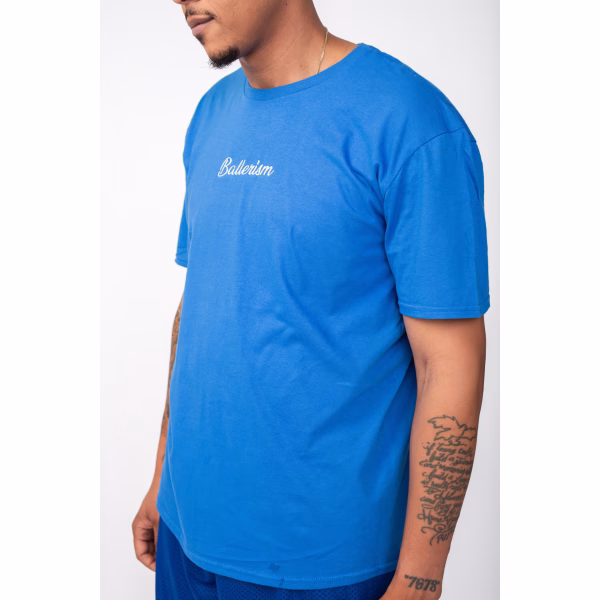 Ballerism Script Logo T-shirt Royal/White